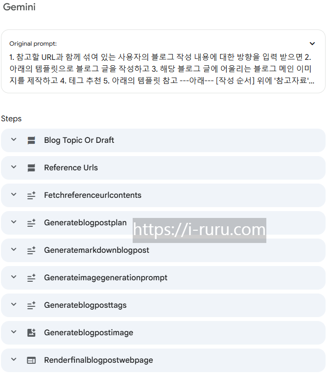블로그 작성하고 싶은 글의 주제와, 참고할 URL 링크를 제공하면, 블로그 글을 작성하고, 메인 이미지를 생성하고, 추천 테그를 작성하도록 지시합니다. (여러번 AI를 요청하던 작업을 한번에 이 모든 과정을 다 해주는 결과물이 나오지요)